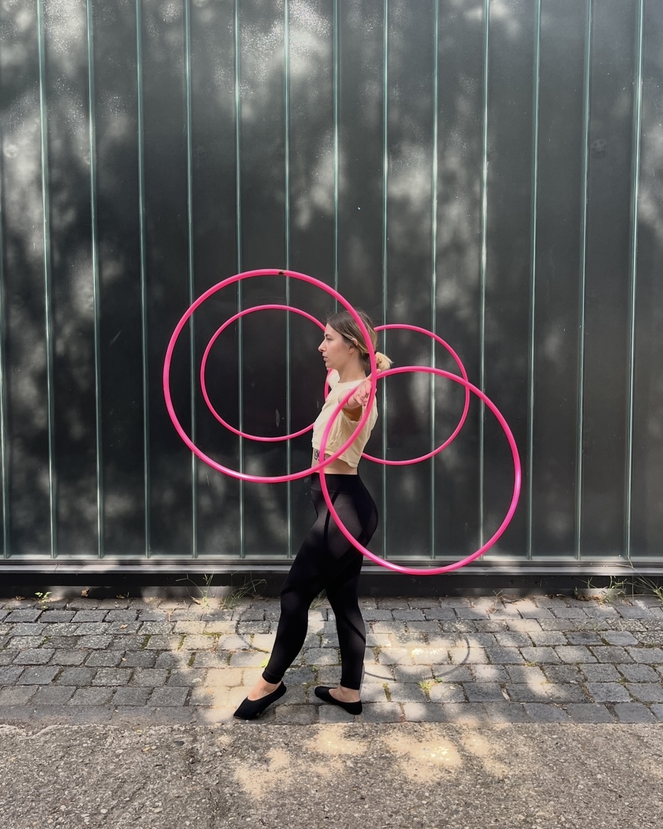Als Künstlerin, Performerin und Trainerin habe ich mich auf Hula-Hoop spezialisiert – ein unfassbar vielseitige Requisite. In meine Arbeit fließt meine Bewunderung für den klassischen Zirkus mit meiner meiner Passion für Popkultur zusammen.